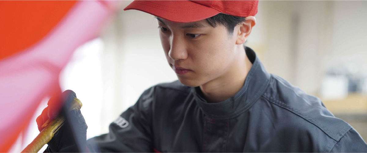 整備士を目指している方は、今後は更にEVモデルが増えていくので電気の基礎知識をしっかり学んでおいて欲しいです。就職活動については、自分がやりたいことや好きなものを見つけて向上心を持って進んで欲しいと思います。好きなことであれば失敗してもくじけず、また挑戦したいと思えますし、成果を感じることで楽しさも感じられると思います。